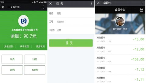 微信充值、挂失、解挂、消费查询