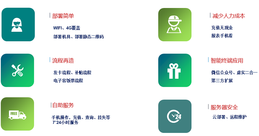 以云平台和公众号为手段,用户可以通过手机微信号,实现与一卡通平台的绑定,充值,消费,挂失,解挂,信息查询等功能,能够为用户提供更方便,便捷,高效和安全的服务。